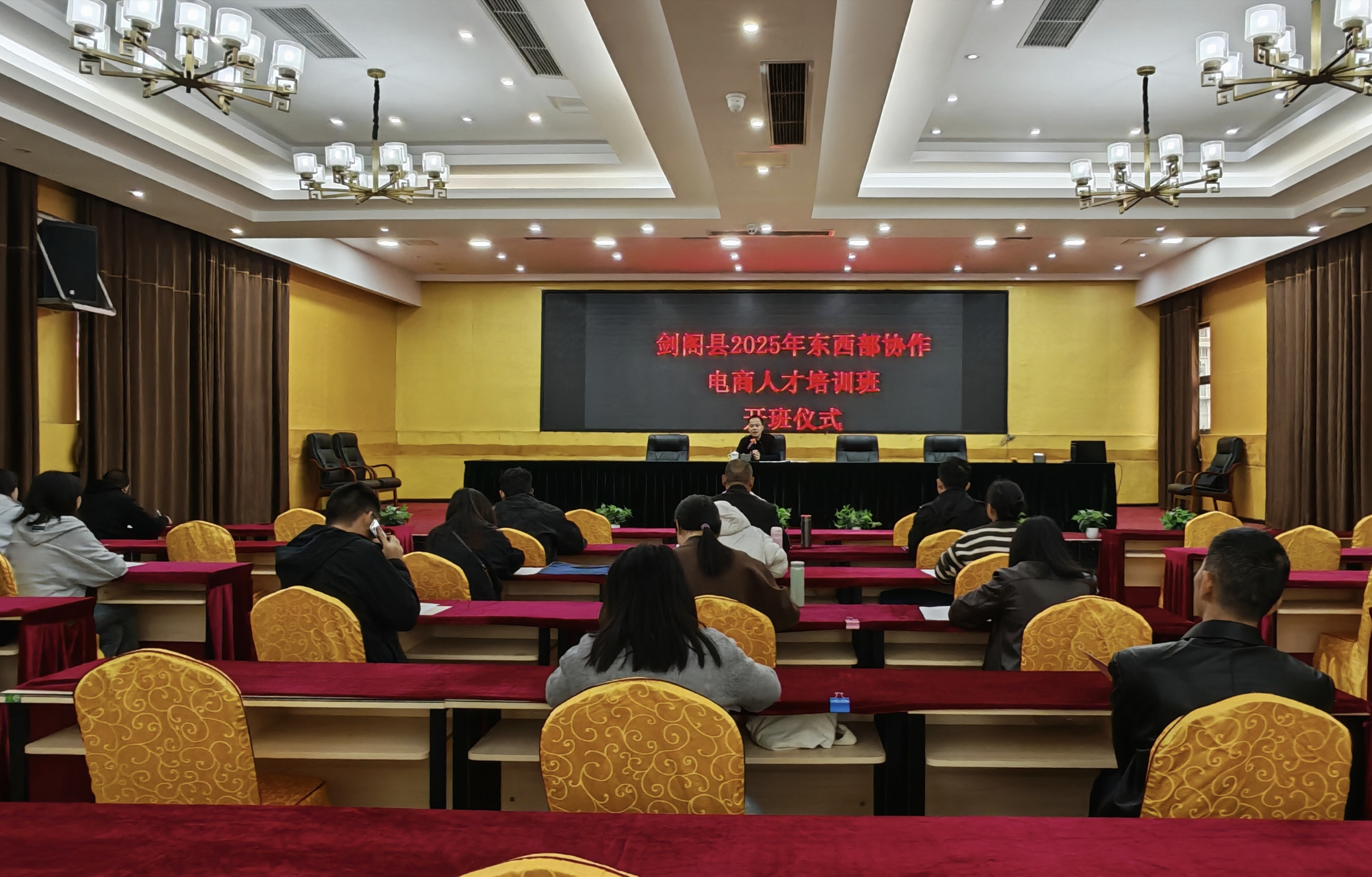 为深入推动电商赋能乡村振兴,培育高素质电商人才队伍,10月27日,由剑阁县商务和经济合作局主办的剑阁县2025年东西部协作电商人才培训班正式启动。全县各乡镇电商干部、电商协会企业、村级电商站点合伙人、电商指导员、电商从业人员等40余名学员参加培训。