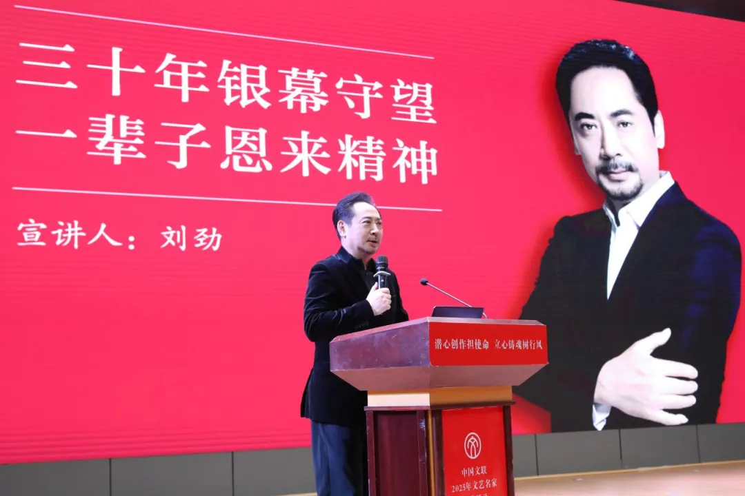 演员刘劲则以“三十年银幕守望,一辈子恩来精神”为主题,深情回顾了塑造周恩来总理银幕形象的艺术求索与精神洗礼。从青年时期立志从艺,到经历艰苦岁月仍坚守理想,他始终秉持“以情动人”的创作理念,通过反复研读史料、走访亲历者,从细节中捕捉人物的神韵,力求呈现一个“生动鲜活、带着气息”的周恩来。他说,真正的主旋律作品应展现真实的人性温度,而塑造周总理的过程,不仅是艺术上的修行,更是精神的深刻洗礼。他表示将继续讲好周恩来的故事,传播党的方针政策,引导观众从历史中汲取力量。