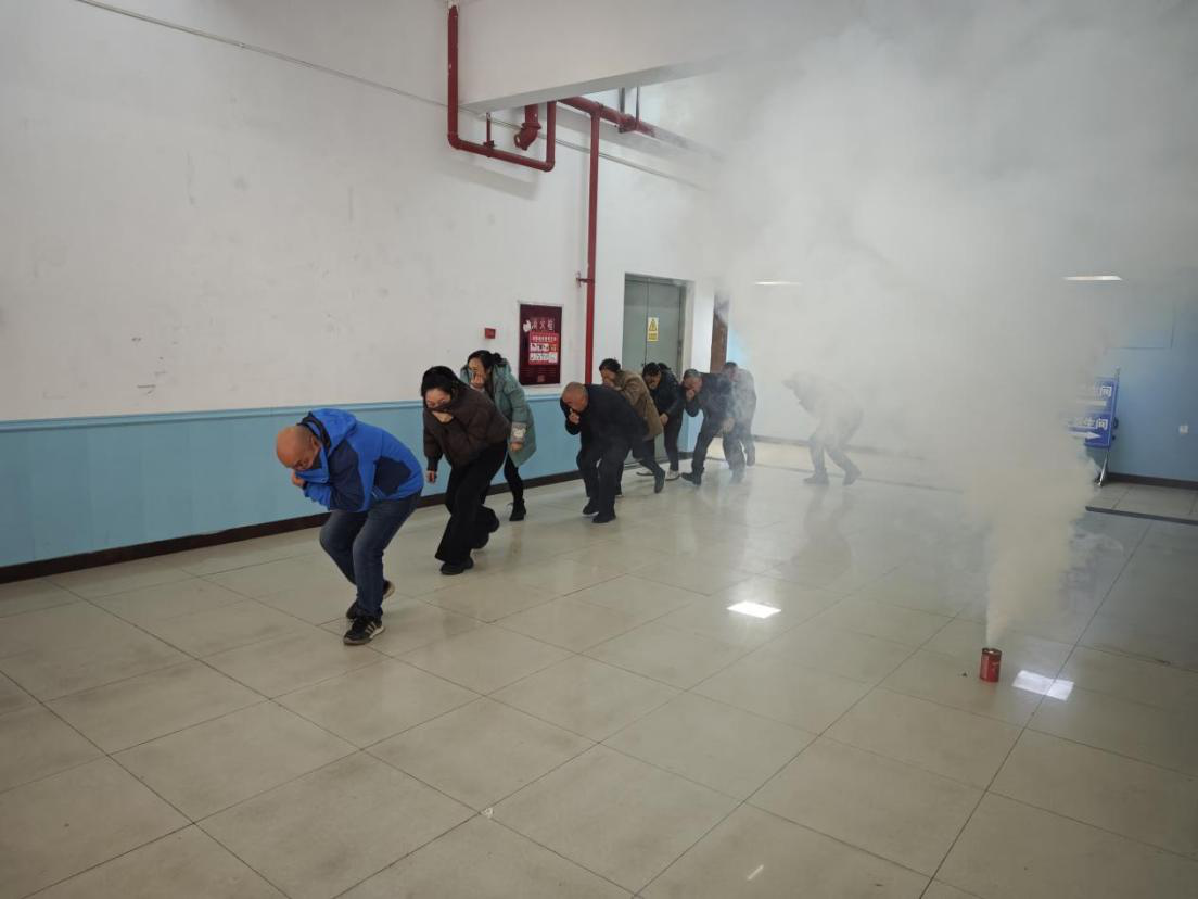 实战演练砺精兵。理论教学后,培训转入实战演练环节。在模拟火场疏散演练中,参训人员按照“低姿捂鼻、靠墙撤离”要领,快速疏散到安全区域;警戒演练则重点演练了火场外围管控、交通疏导及舆情应对流程。在消防器材操作区,教官现场演示了干粉灭火器“提拔握压”四步操作法、消防水带快速连接技巧及防烟面罩正确佩戴方式,参训人员逐一实操考核,确保人人过关。