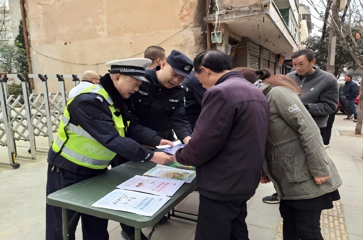 聚焦节点设点,实现知识“上门送”。紧扣赶场日镇区人流量大的特点,在农贸市场、主干道等重点区域设立宣传点,向过往群众发放涵盖行人安全、骑行规范、酒驾危害等内容的宣传手册、传单及定制宣传品,手册结合本地案例图文并茂;同步播放警示视频强化效果,累计发放资料500余份,让交通安全知识直达群众身边。