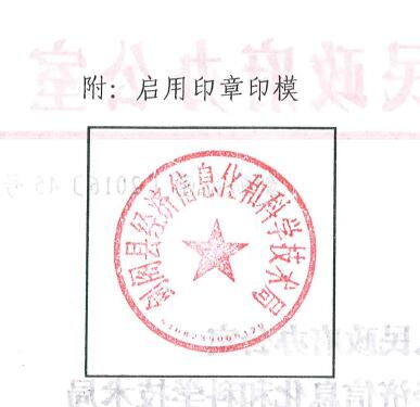 根据《中共剑阁县委机构编制委员会<关于调整商务和农机管理职能的通知>》(剑编发〔2016〕17号)文件精神,将原县经济商务和科技信息化局承担的商务经济管理、服务业协调职能划入县商务局,县经济商务和科技信息化局职能调整后,更名为剑阁县经济信息化和科学技术局。为县政府工作部门。现因名称变更和工作需要,从即日起启用“剑阁县经济信息化和科学技术局”印章,原“剑阁县经济商务和科技信息化局”印章自发文之日起作废。