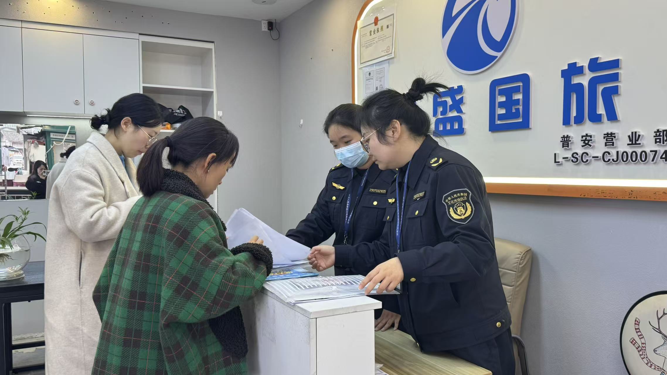 为深入贯彻落实中共广元市委八届十一次全会关于“打造翠云廊—剑门关世界级文旅地标”的决策部署,持续巩固前期旅行社约谈会成果,进一步规范我县旅游市场经营秩序,切实保障游客合法权益,12月11日,县文化市场综合行政执法大队联合局质量管理股、局行政审批股,对普安镇辖区内的旅行社服务网点开展了旅游市场专项整治执法检查行动。
